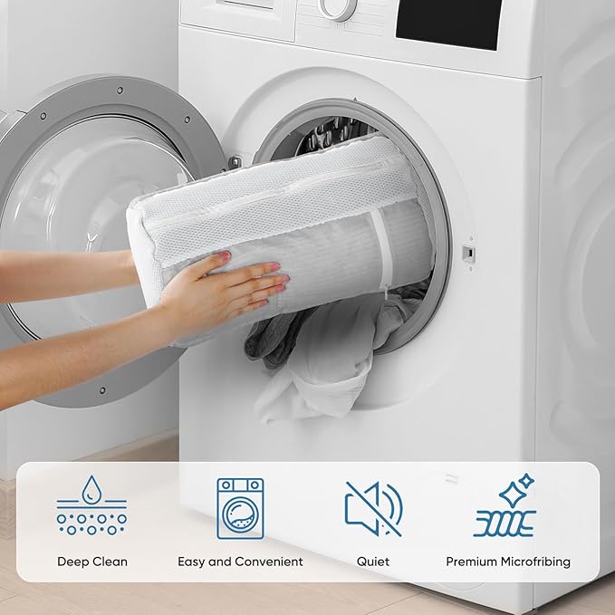 - Worry Free about Ruining Your Shoes:M-Better shoe wash bag Made with high-density mesh, soft chenille padding, and a durable zipper, this innovative shoe washer machine bag keeps your footwear locked in, cushioned, and protected during machine washes. No more loud banging. No more shredded insoles. No more tangled laces. Just easy, hassle-free shoe cleaning at home.