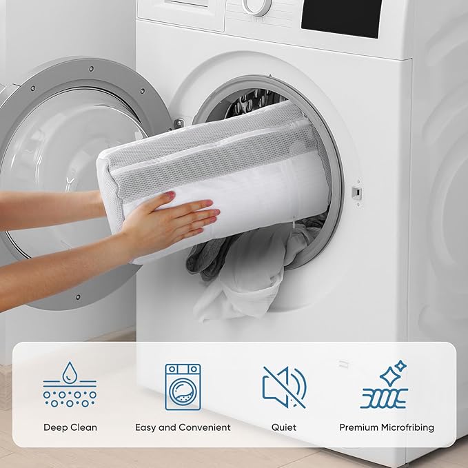- Worry Free about Ruining Your Shoes:M-Better shoe wash bag Made with high-density mesh, soft chenille padding, and a durable zipper, this innovative shoe washer machine bag keeps your footwear locked in, cushioned, and protected during machine washes. No more loud banging. No more shredded insoles. No more tangled laces. Just easy, hassle-free shoe cleaning at home.