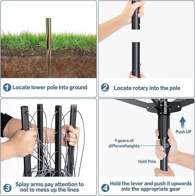 - CONVENIENT PRACTICAL: A-xctoe Portable Umbrella Clothes Drying Rack is assembled, you just need to insert the metal floor into the ground, then insert the clothes drying rack into the floor. In addition, you can fold it up for storage when not in use, which is very convenient and practical