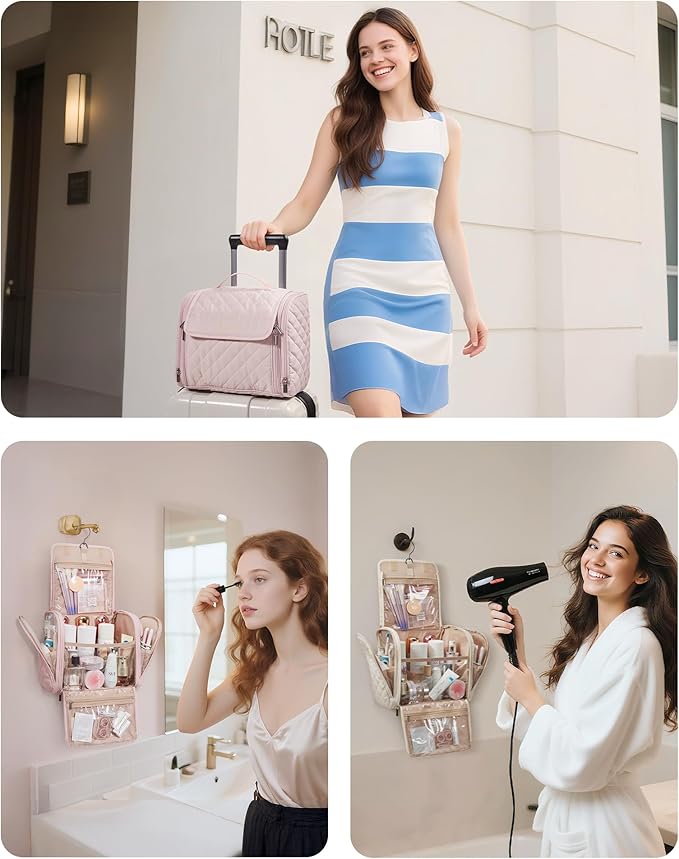 - 【Multi-functional Makeup】: This portable hanging makeup bag is a multifunctional organizer bag that combines the functionality of a makeup bag and a travel toiletry bag. It is an excellent choice for a wide range of activities, from travel, business trips, fitness routines, and beach outings to picnics and home storage. It also makes for a perfect gift for ladies, friends, and family on special occasions such as birthdays, Christmas, and Valentine's Day.