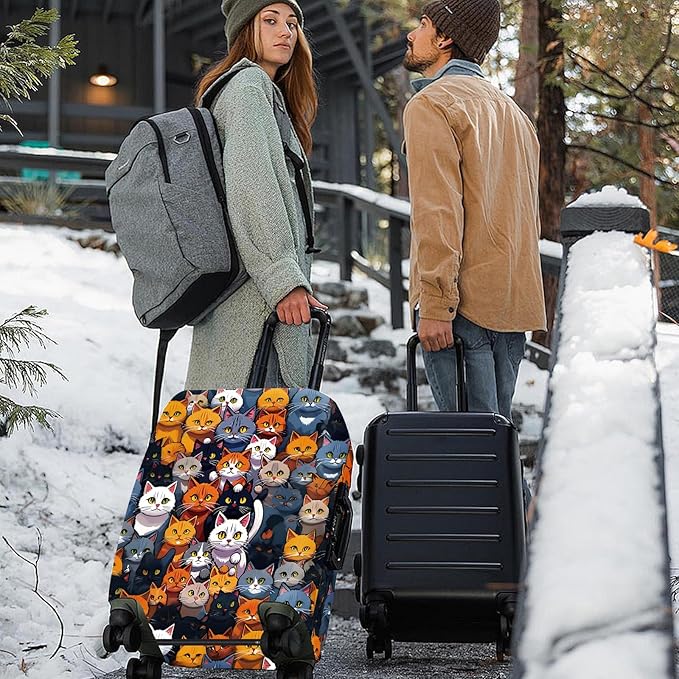 - Unique & Playful Design: This luggage cover features a fun and vibrant design with a variety of cats in different colors and expressions. Perfect for cat lovers and anyone looking to make a playful statement with their luggage