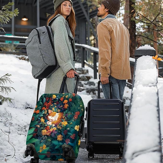 ANNA QUEEN Dreamy Cat Luggage Cover, Cat Sleeping in a Flower Field Design, Stretchable, Washable Travel Protector for 24-26 Inch Luggage
