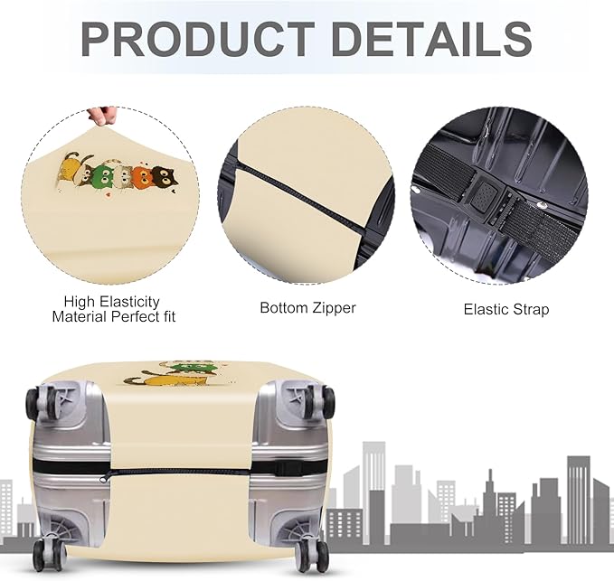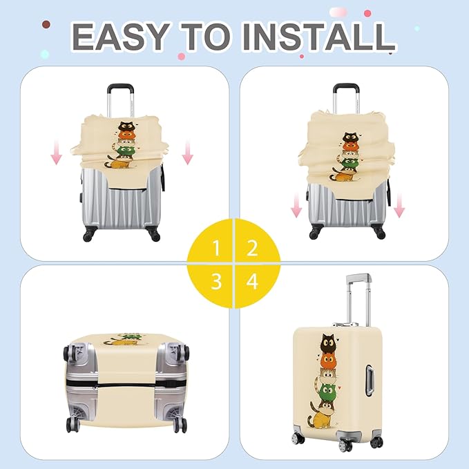 - Fun & Cute Cat Design: Featuring a stack of adorable cats in different colors, this luggage cover brings a playful touch to your travel gear