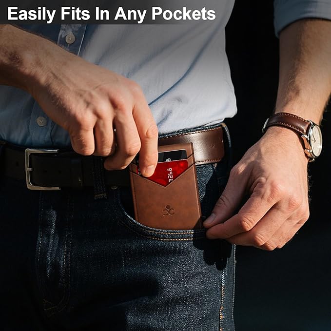 - LARGE CASH SLOT & CLEAR ID WINDOW: In addition to the card slots, this card holder wallet has a spacious cash slot that can hold 10–15 bills. The leather flap includes a transparent ID slot, ideal for an ID card or driver’s license. It’s designed to meet the everyday needs of men.