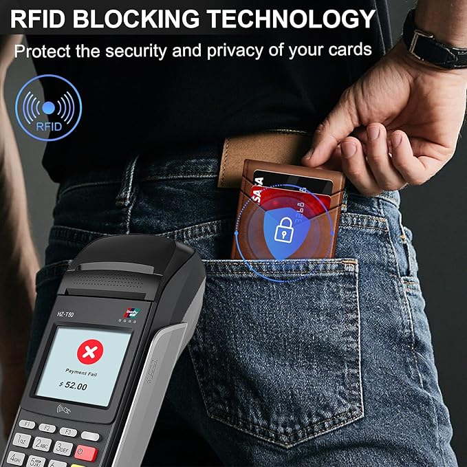 - RFID BLOCKING: The rfid wallet for men is lined with RFID-blocking fabric inside the leather layers. This protects your personal and financial information from unauthorized scans.