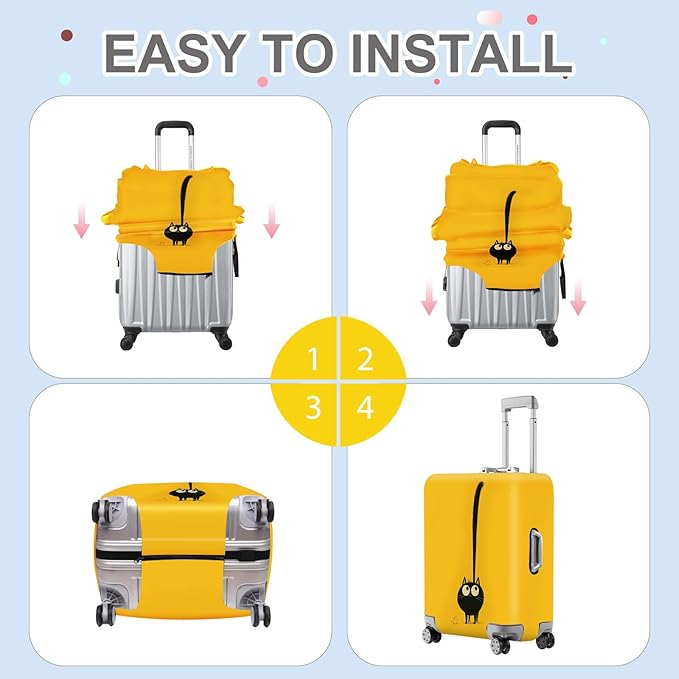 - Whimsical & Fun Design: This adorable black cat luggage cover features a playful cat with a long, swooping tail, perfect for cat lovers and quirky travelers