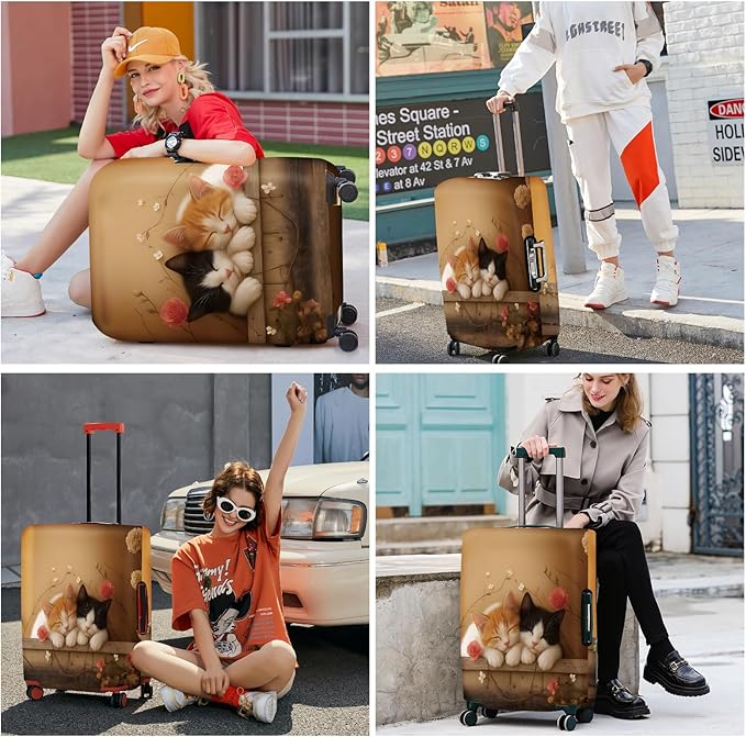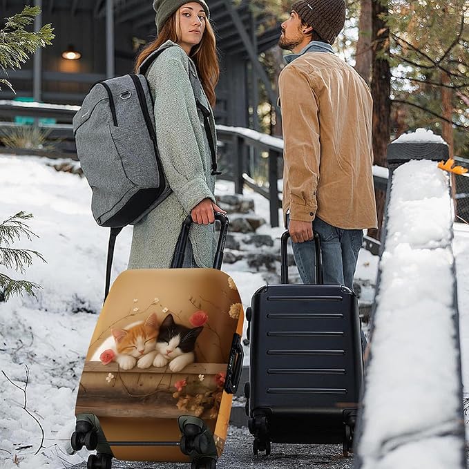 - Adorable Kitten Design: This charming luggage cover features two cute sleeping kittens surrounded by soft floral elements, perfect for nature lovers and cat enthusiasts