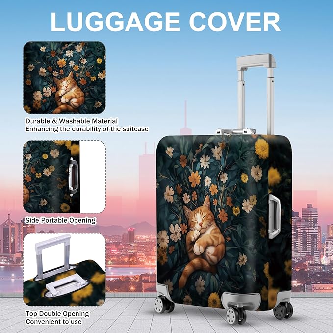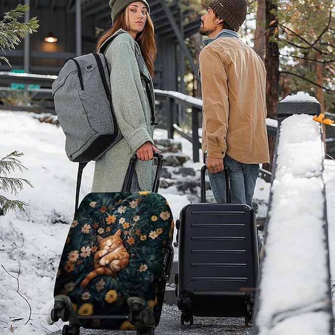 - Unique & Serene Design: This peaceful luggage cover features a beautiful sleeping cat surrounded by delicate flowers, offering a calming and artistic design perfect for nature lovers and cat enthusiasts.