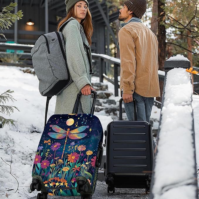 - Magical & Whimsical Design: This luggage cover features a beautiful dragonfly flying through a starry night sky with vibrant flowers, adding a magical touch to your travel gear