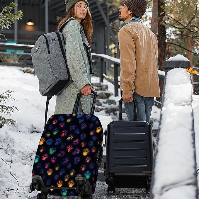 - Unique & Colorful Paw Prints Design: This luggage cover features fun, vibrant paw prints that glow in the dark, making your suitcase stand out