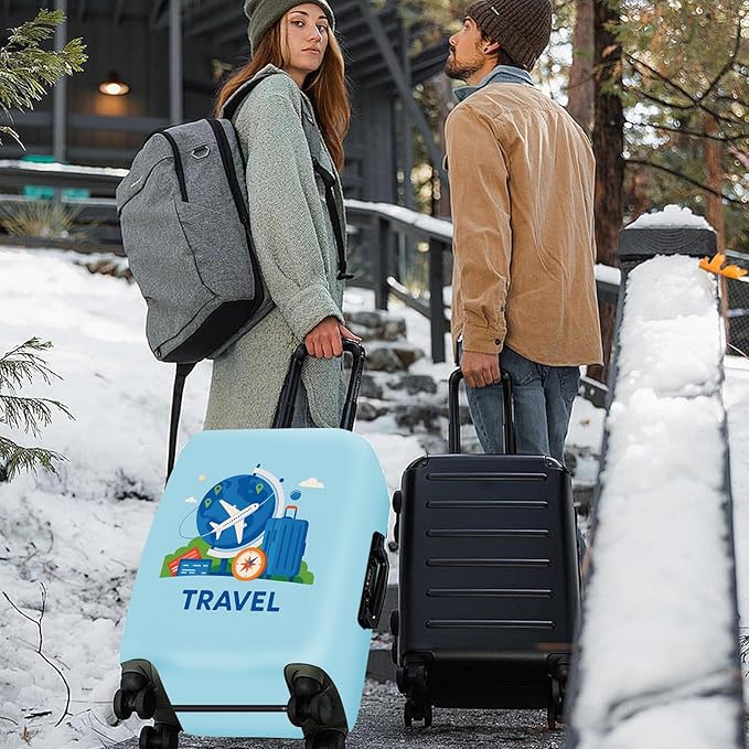 - Unique & Adventurous Design: Featuring an airplane and globe, this luggage cover is perfect for travel enthusiasts and globetrotters