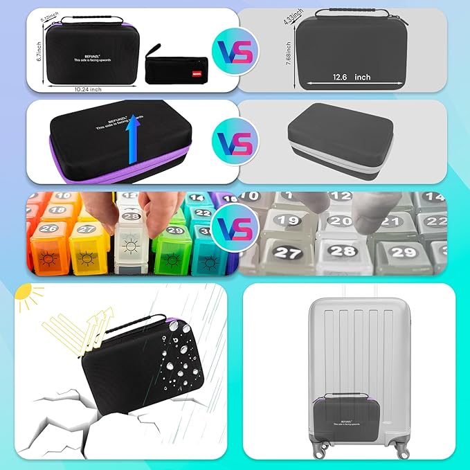 - 【Sturdy Carrying Case】31 Day Pill Organizer with Hard Shell EVA Box and Insert Foam, keeps your medications secure and protected while traveling.
