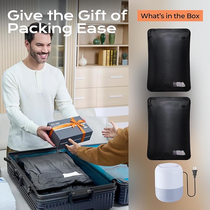 Essential Vacuum Bags for Travel Luggage with Electric Pump, Reusable Compression Bags for Checked Suitcases, Vacuum Seal Spacesaver for Cloth Packing(2Large+Pump)