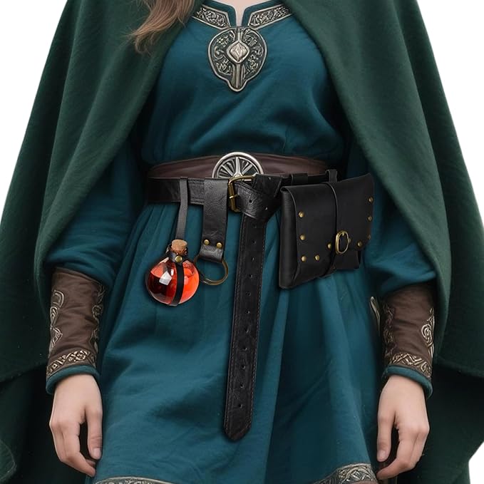 - Practicalityl: use the medieval belt pouch for storing small items (such as your wallet, cards, keys, phone and more),secure skirts with the skirt clip,adjust the leather belt to your waistline.Not just an attractive addition to your outfits,this renaissance accessories women are utilitarian as well.
