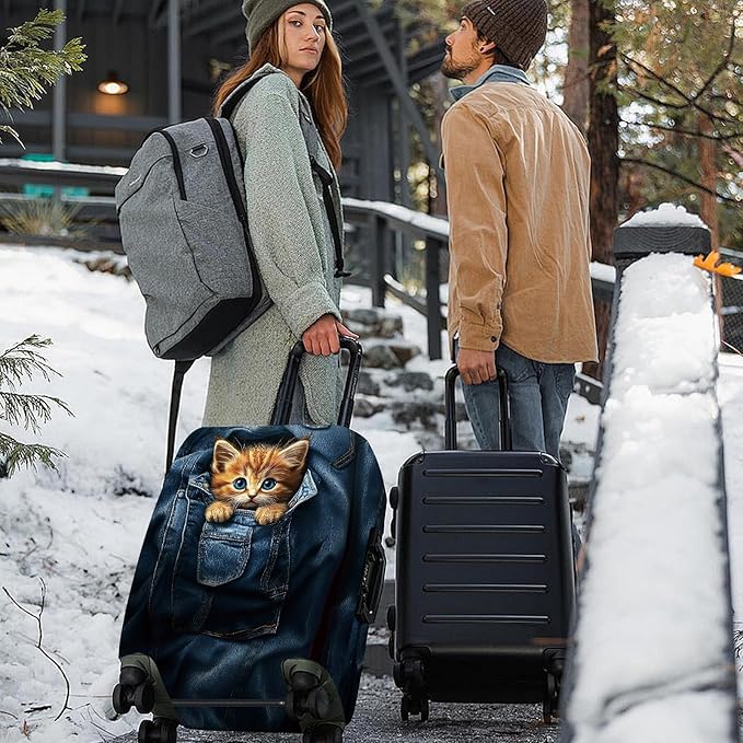- Adorable Cat Design: This cute kitten luggage cover features a playful orange tabby peeking out of a realistic denim pocket—perfect for cat lovers and travelers who want a fun, standout look.