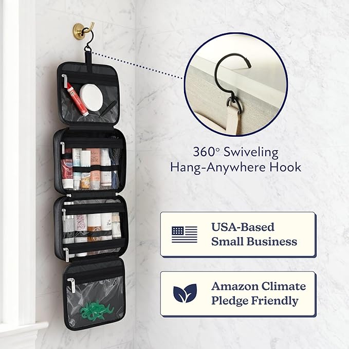 - HANG IT ON ANYTHING: With a 360° swivel hook, this travel toiletry bag hanging organizer easily attaches to mirrors, doors, or counters - perfect for hanging toiletry bags for traveling women or any womens toiletry travel bag that needs visibility