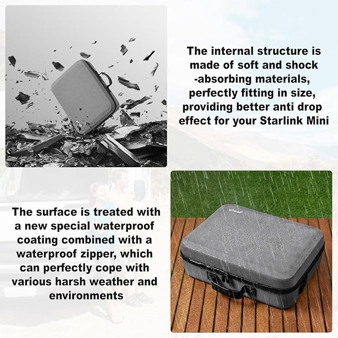 - Starlink Mini Case – Compatible with Anker 737, A1340 Or less than 6.5 * 2.36 * 2.36 inchesPower Banks, uninterrupted outdoor use; includes only the case and 1m DC5521 to Type-C cable—no Starlink Mini devices or power banks