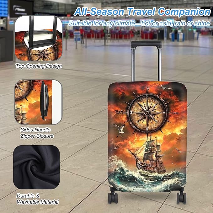 Luggage Cover Protector for 30-32 Inch Suitcases, TSA Approved Elastic Travel Suitcase Covers, Anti-Scratch Washable Luggage Sleeve for Carry On & Checked Bags, Compass Navigation
