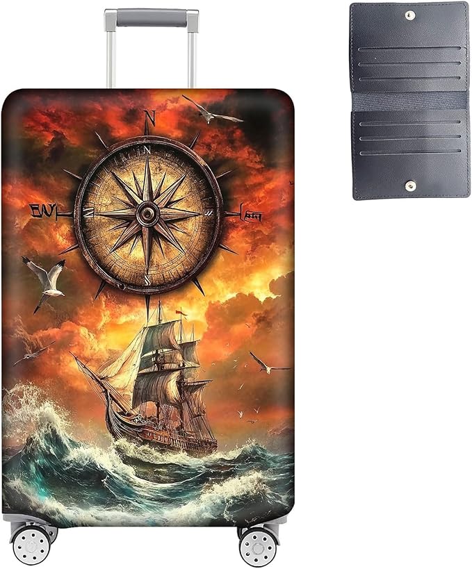 Luggage Cover Protector for 26-28 Inch Suitcases, TSA Approved Elastic Travel Suitcase Covers, Anti-Scratch Washable Luggage Sleeve for Carry On & Checked Bags, Compass Navigation