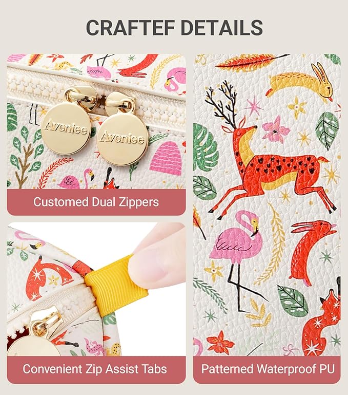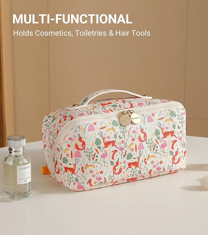 - Premium & Artistic Build:Heavyweight waterproof PU leather with exclusive floral prints resists stains. Reinforced structure shields fragile beauty tools—luxury meets function.