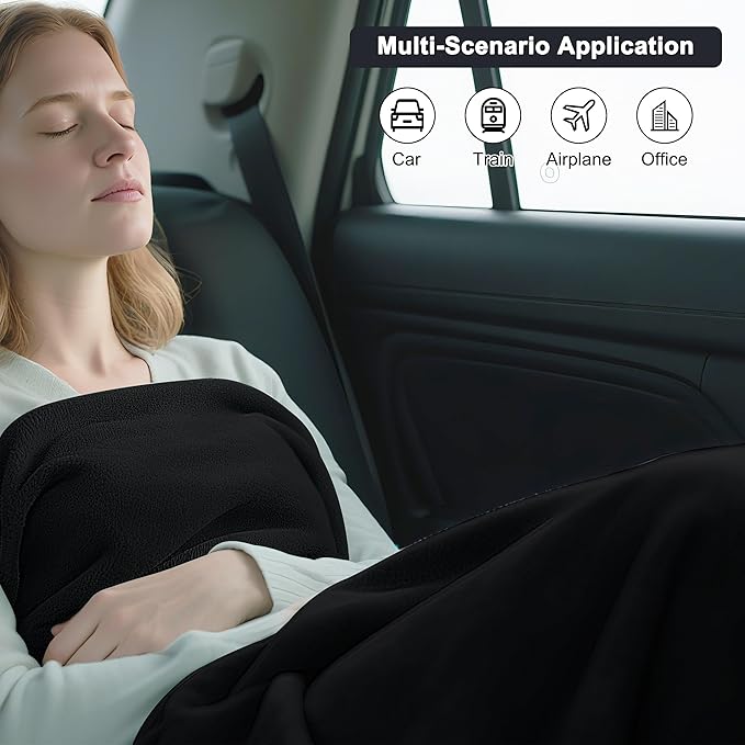 - 2-IN-1 BLANKET AND PILLOW CONVENIENCE PACK: Turn the pillowcase-style pouch into a soft head or lumbar pillow! Opens as a blanket, closes as a pillow. The lightweight design makes it ideal for airplanes, cars, offices, and emergencies, making it a must-have for anytime, anywhere travel