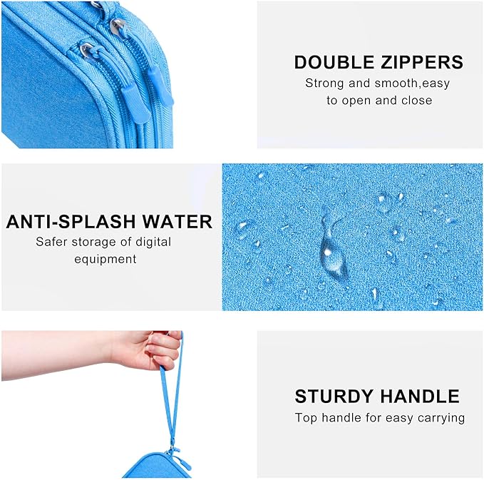 • PERFECT FOR TRAEL: Size: 9.45*6.89*1.97in, The travel cable organizer is designed with a hand strap, portable design and ideal size are easy to carry and fit in your handbag and luggage. Just put all your needed devices in the cable organizer,you are ready to go, preventing you from leaving things behind.