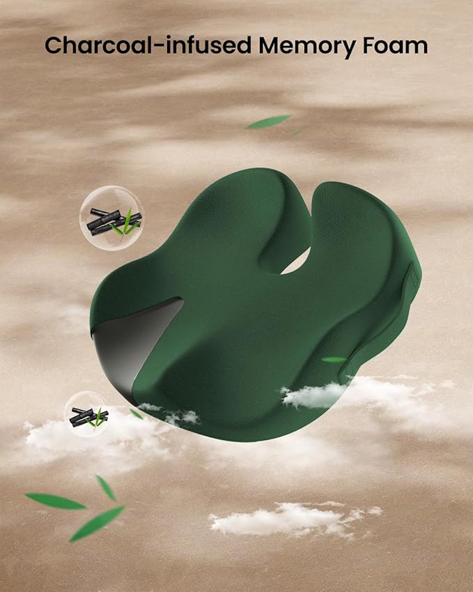 ProtoArc Seat Cushion, Office Chair Cushion for Sciatica, Coccyx Cushion, Ergonomic Memory Foam Seat Cushion for Car, Home, Pressure Relief Pad for Hip, Tailbone, All Day Comfort - Dark Green