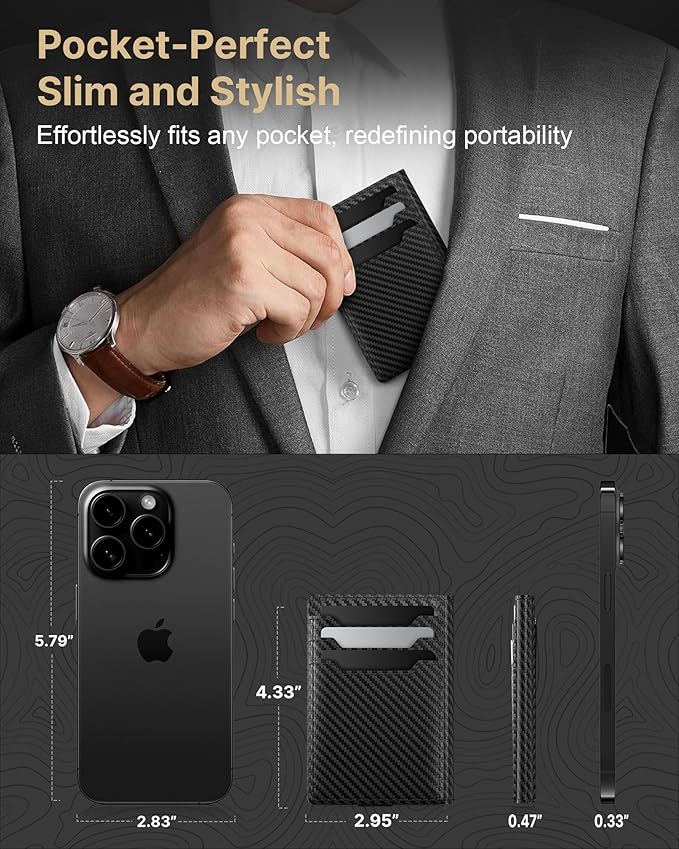 - Slim, Pocket-Friendly Design: Measuring 4.33" × 3.15" × 0.53", this slim wallet easily fits in your suit or jeans pocket without bulk, while offering room for 11 cards, an ID window, and 15 folded bills.