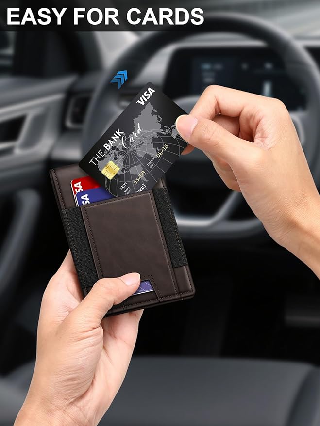 - EXPANDABLE CASH SLOT: Unlike typical money clip wallets, the back of this slim wallet for men is upgraded with an expandable cash slot, capable of holding a few folded bills or up to 5 cards.
