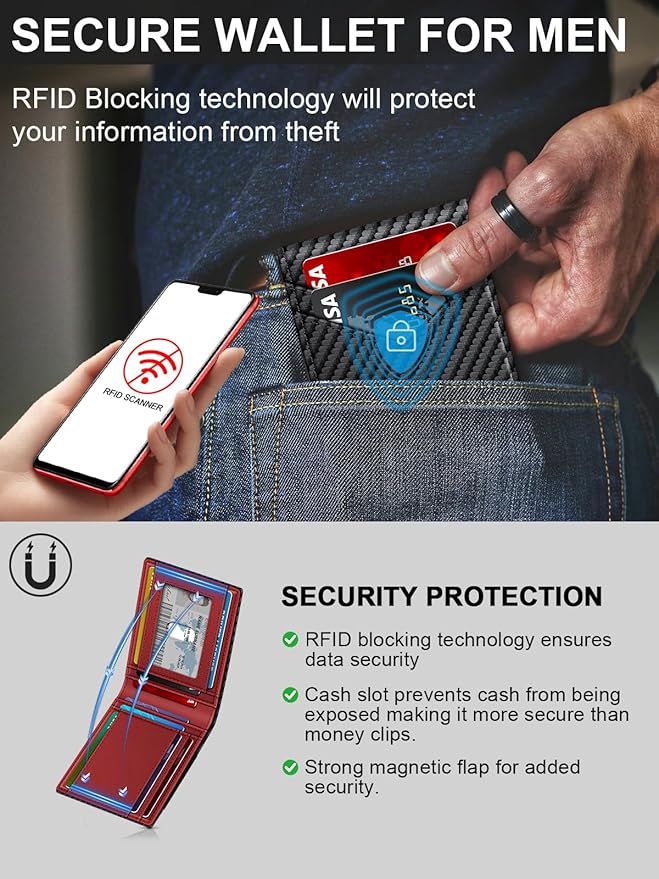 - ULTRA-THIN POCKET WALLET: This rfid wallet for men measures 4.45 x 3.15 x 0.6” and can hold up to 17 cards, fitting perfectly into your front pocket. Its compact design makes it ideal for everyday carry and an excellent travel wallet.