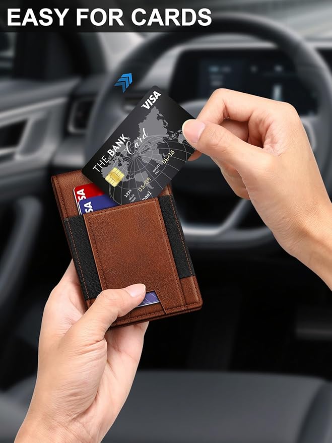 - EXPANDABLE CASH SLOT: Unlike typical money clip wallets, the back of this slim wallet for men is upgraded with an expandable cash slot, capable of holding a few folded bills or up to 5 cards.