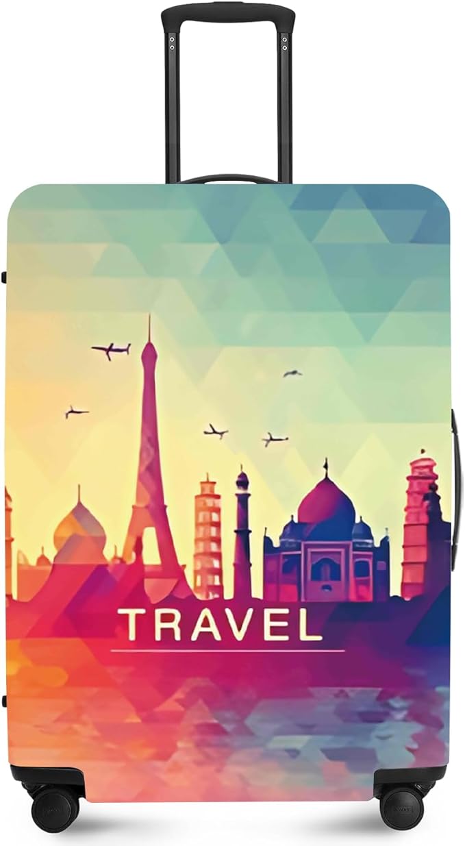 ANNA QUEEN Funny Travel Luggage Cover Suitcase Protector Suitcase Cover Anti-Scratch,Stretchable Fit for 18-32Inch Luggage,Travel Bag Cover Washable (Travel, L(fits 26-28Inch suitcase))