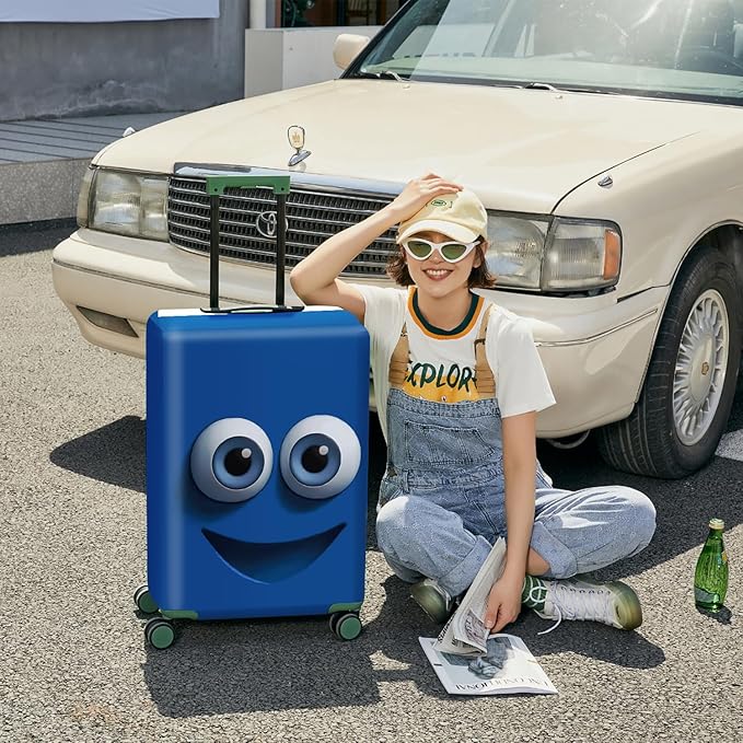 ANNA QUEEN Cut Blue Emoticons Luggage Cover Washable Suitcase Protector Suitcase Cover Anti-Scratch,Stretchable Fit for 18-32Inch Luggage,Travel Bag Cover XL(fits 29-32Inch suitcase)
