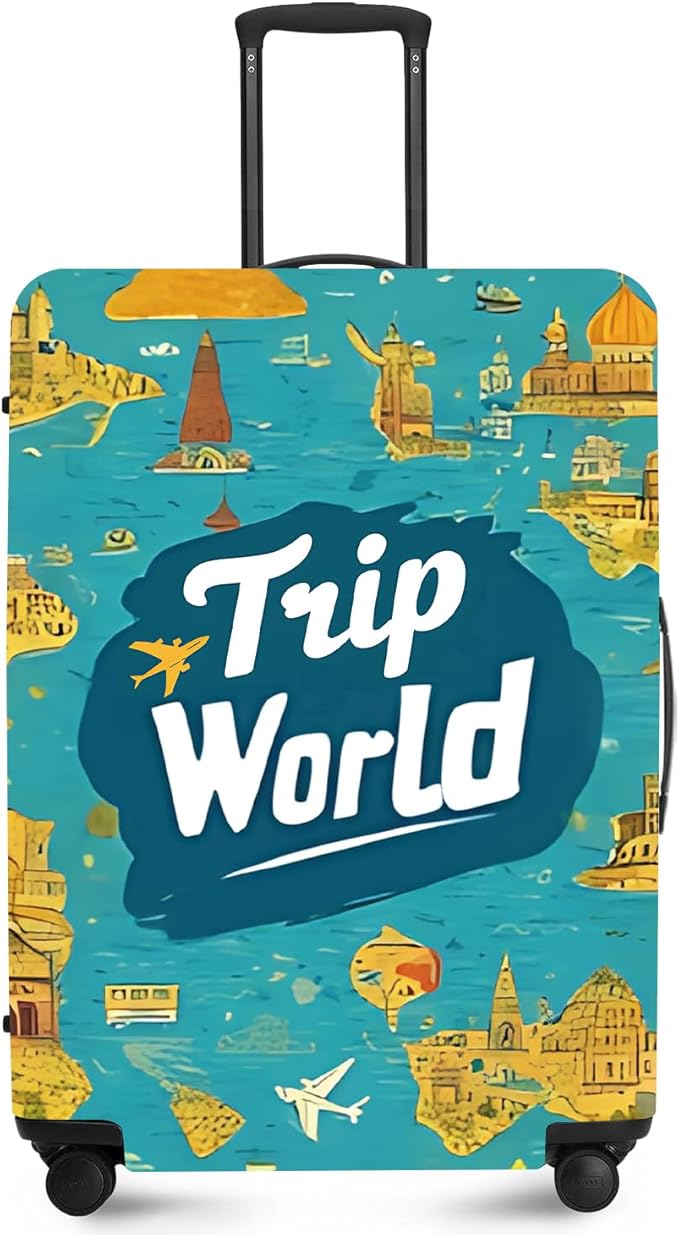 ANNA QUEEN Trip Word Travel Luggage Cover Suitcase Protector Suitcase Cover Anti-Scratch,Stretchable Fit for 18-32Inch Luggage,Travel Bag Cover Washable L(fits 26-28Inch suitcase)