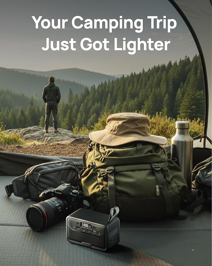 - [𝐒𝐚𝐟𝐞𝐫 𝐚𝐧𝐝 𝐋𝐨𝐧𝐠𝐞𝐫 𝐋𝐚𝐬𝐭𝐢𝐧𝐠]: R101 Lite portable power station uses 28000mAh LiFePO4 batteries, which are safer than traditional Li-polymer power banks and extend the lifespan more than 6x. The LED light on the back with adjustable brightness and SOS modes to ensure lighting during emergencies, like hurricane power outages or in the wild.