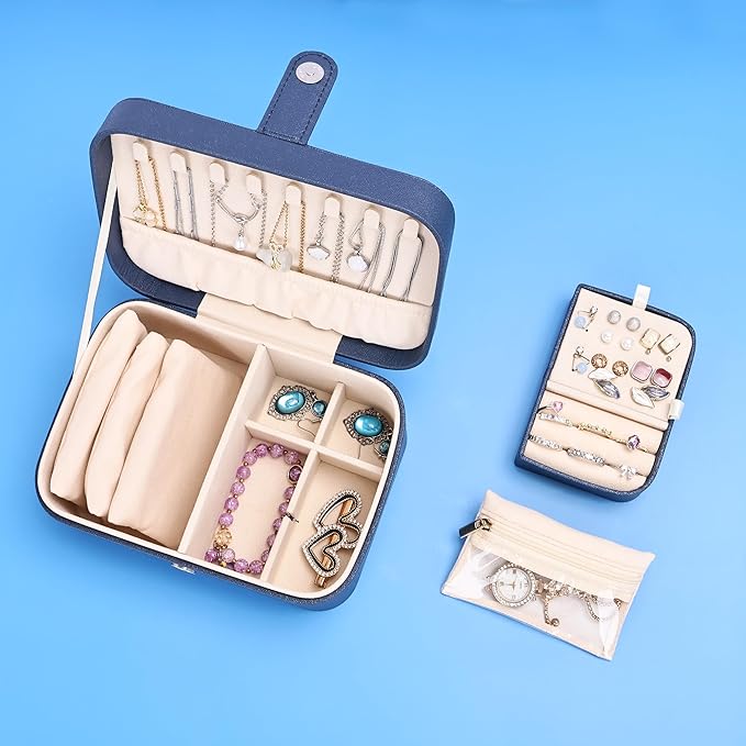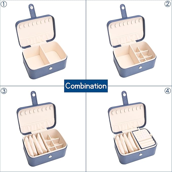 - Exquisite Details: The grainy artificial leather of the 2 layer jewelry box is glossy, dirt-resistant, easy to clean and waterproof on the surface. Neat stitching adds beauty to the medium-sized jewelry case. The magnetic buckle is securely closed and easy to use