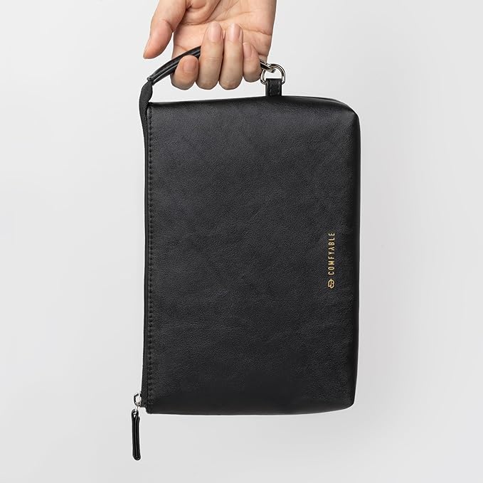 Comfyable Electronic Organizer Travel Case, Cord Storage Bag for Tech Accessories, Water-resistant Cable Organizer, Premium Leather Pouch for Charger, Phone, Cable, Mouse, Power Bank, Black