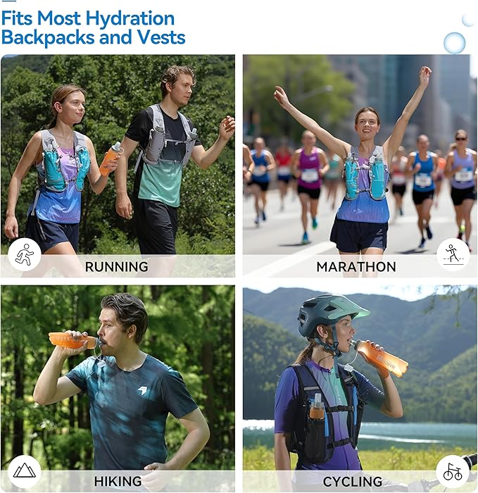 - Two Capacity Options: 300ml is designed for short lightweight activities like morning runs, urban cycling, casual walks. 500ml is built for endurance activities like trail running, backpacking, long-distance biking, marathon race. Choose based on intensity and duration. Hydrate effortlessly mid-activity to boost performance and comfort.