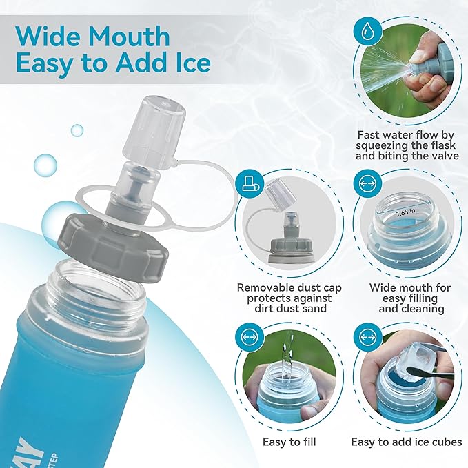 - Two Capacity Options: 300ml is designed for short lightweight activities like morning runs, urban cycling, casual walks. 500ml is built for endurance activities like trail running, backpacking, long-distance biking, marathon race. Choose based on intensity and duration. Hydrate effortlessly mid-activity to boost performance and comfort.