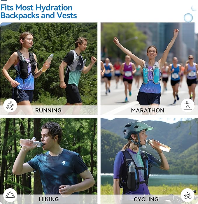 - Two Capacity Options: 300ml is designed for short lightweight activities like morning runs, urban cycling, casual walks. 500ml is built for endurance activities like trail running, backpacking, long-distance biking, marathon race. Choose based on intensity and duration. Hydrate effortlessly mid-activity to boost performance and comfort.