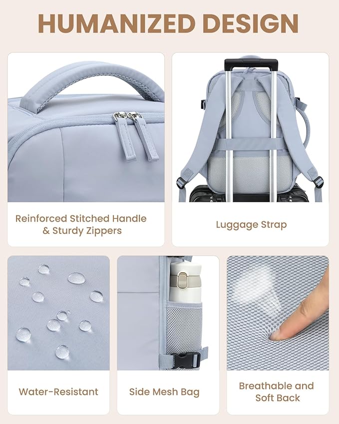 - Eticulously Designed for Peak Convenience: Our travel backpack features a game - changing luggage sleeve. This sleeve effortlessly slides over suitcase handles, freeing your hands and eliminating the hassle of juggling multiple bags. Complementing the luggage sleeve are sturdy side handles, with an ergonomic design providing a comfortable grip and versatile carrying options. this backpack makes every journey smoother and more enjoyable.