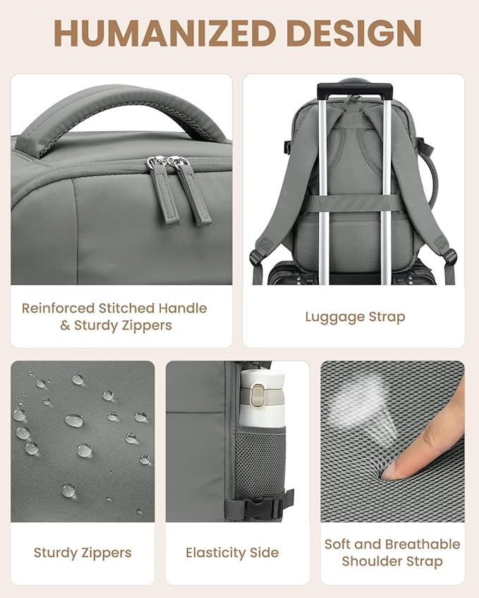 - Eticulously Designed for Peak Convenience: Our travel backpack features a game - changing luggage sleeve. This sleeve effortlessly slides over suitcase handles, freeing your hands and eliminating the hassle of juggling multiple bags. Complementing the luggage sleeve are sturdy side handles, with an ergonomic design providing a comfortable grip and versatile carrying options. this backpack makes every journey smoother and more enjoyable.