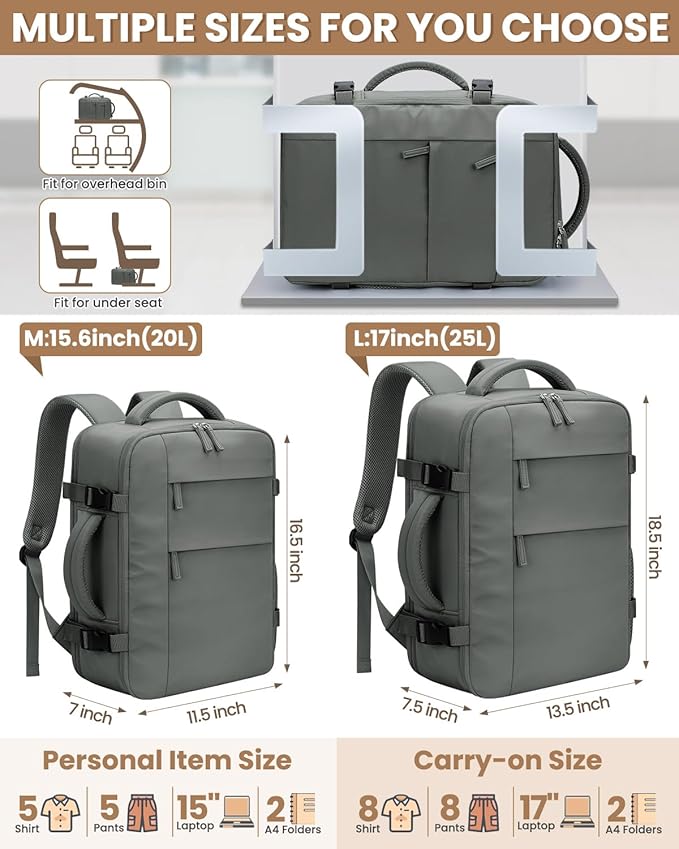 - Flight-Approved Personal Item Backpacks: Sized at 16.5 × 11.5 × 7 inches & 20L a capacity for Medium. Featuring a 180-degree bidirectional zipper closure, these backpacks enable quick and easy security checks. Ideal for travel, they fit both overhead and under-seat compartments. Compliant with most airline regulations personal item regulations. Pritent travel backpacks offer the perfect blend of functionality and style, making them a must-have for any traveler.