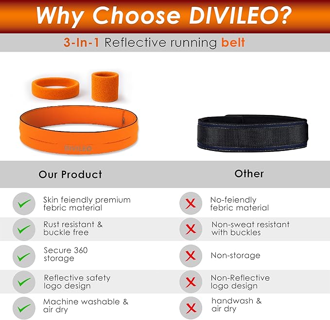 - โจ Reflective Safety Logo High-visibility DIVILEO logo enhances safety in low light conditions without compromising the beltโs minimalist style โ perfect for early morning or nighttime runs.