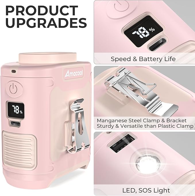 - 40H Max Running: AMACOOL waist clip fan is designed with buyer's needs in mind, providing up to 40 hrs of continuous airflow at wind speed 1 with the 10000mAh built in battery, it lasts up to 8 hrs even in the strongest speed, greatly reduces the number of recharges, LED display let you know when to charge; Feature with a 5V-2A USB output port to charge your phone in emergency