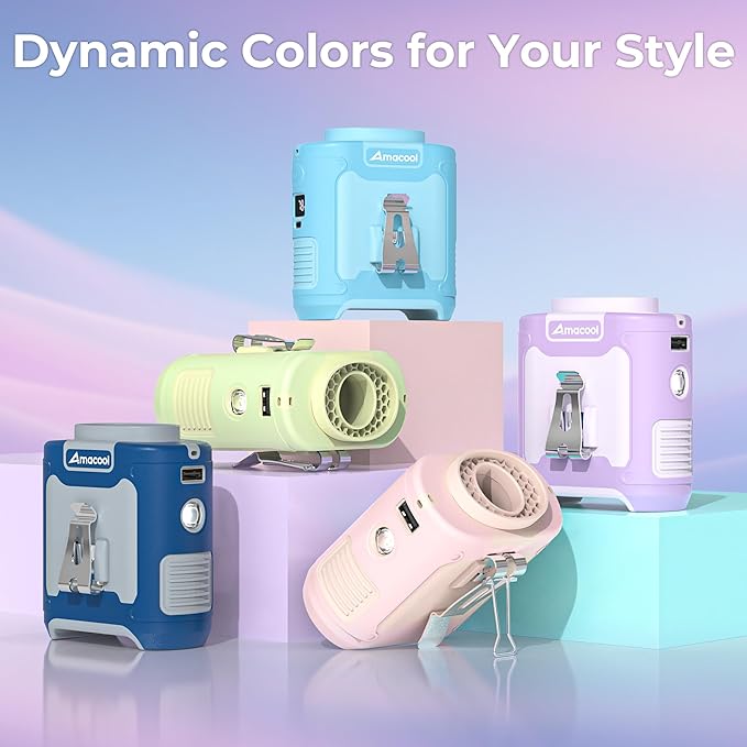- Rechargeable & Portable: Wearable small fan get power supply from USB devices via 5V-2A input port within 4-5 hours, and support working while charging, ensuring continuous comfort wherever you go. Only 0.63lb, so you can take it anywhere, perfect for camping,travel,fishing,Disney,hiking,cycling; Package includes AMACOOL belt fan, USB-C cable, adjustable landyard