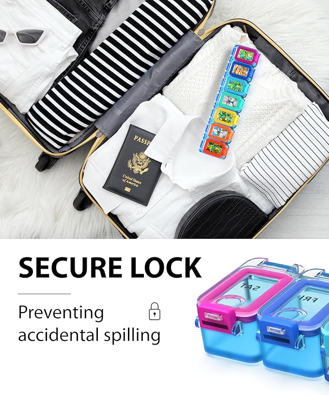 - Upgraded locking system – the pill box 7 day features reinforced individual latches that stay tightly closed to prevent spills. Designed for long-term durability without snapping or wearing out
