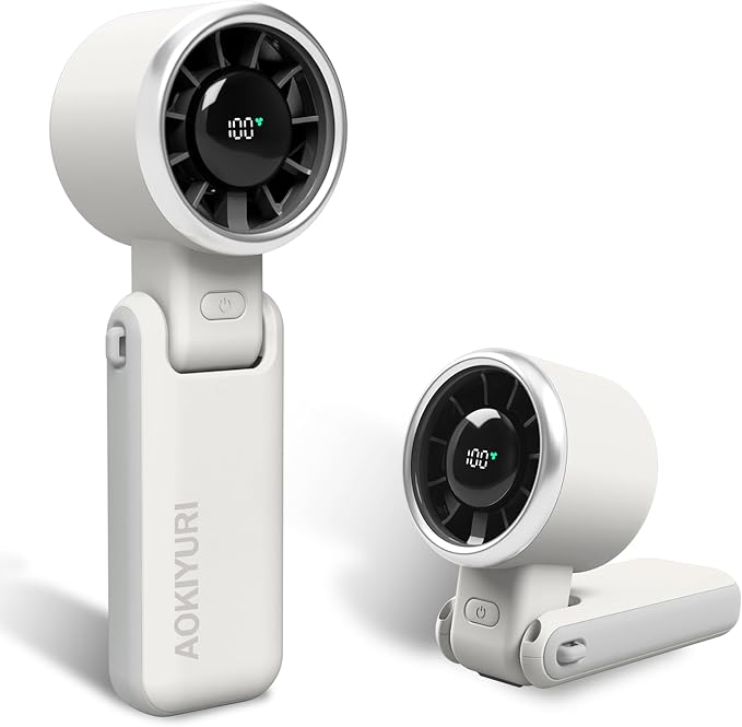 - Smart LED Display Turbo Handheld Fan ✓ Real-Time Power Monitoring - HD screen shows exact battery % & speed level (1-5) ✓ Low-Power Alert - Flashing reminder when charge drops below 10% ✓ Travel Essential - Fits in cup holders & backpacks (6.8oz)