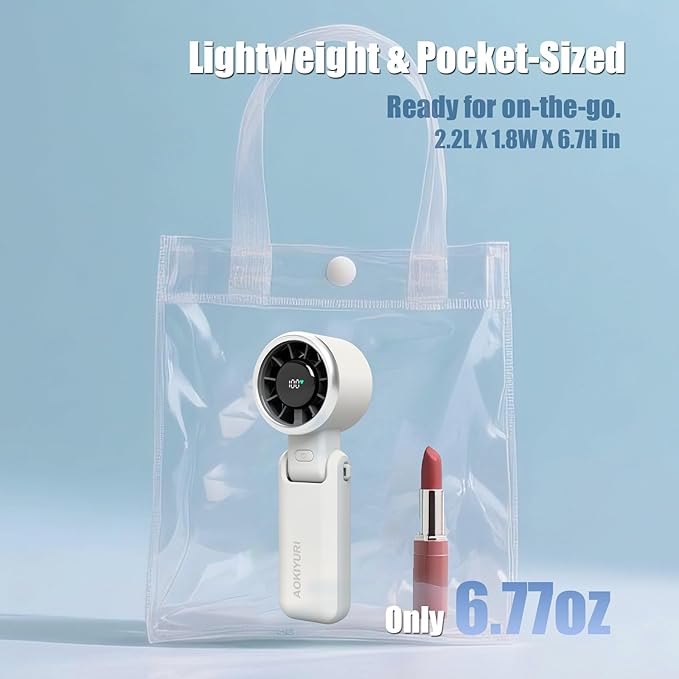 - Ultra-Portable 5-Speed Handheld Fan - Perfect Summer Companion ✓ Pocket-Sized Power - Compact 6.6" design fits in bags/purses (weighs only 6.8oz) ✓ Universal Gift Choice - Trendy colors for men/women/kids ✓ 360° Usage - Ideal for kitchen/office/travel/gym/makeup fan handheld sessions ✓ Travel-Ready - FAA-approved for carry-on luggage & car cup holders