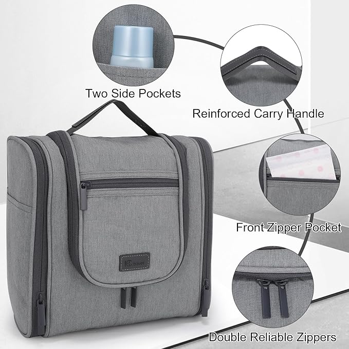 Hanging Toiletry bag & Makeup Bag for Travel, Water-Resistant Organizer Toiletries Bag with Separate Compartments, Travel Essentials Kit (Gray)